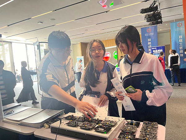 讯方技术在技能成果展示区域设立展位,展示公司最新技术成果和人才培养理念。深圳市政府副秘书长朱武,深圳市人力资源和社会保障局副局长马艳,南山区副区长夏雷,深圳市人力资源和社会保障局职业能力建设处处长杨保华、副处长李小梅,南山区人力资源局申迎波局长等领导,莅临展位参观指导,并询问相关细节。