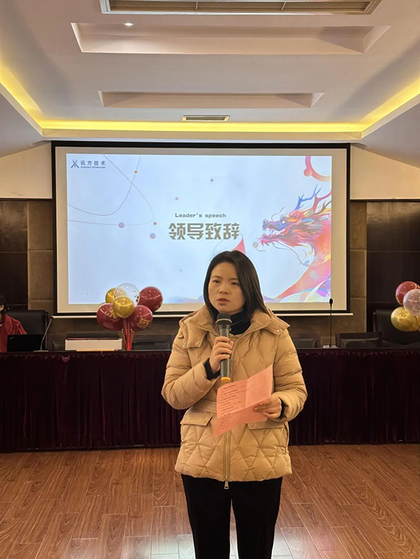 典礼伊始,四川讯方技术总经理李丽发表致辞,回顾2023年,第一时间对所有员工的辛勤付出表示衷心的感谢,风正潮平,自当扬帆破浪;任重道远,更需策马扬鞭。2024,新的ICT行业生态蓝图已经铺就,更需每一位员工在人才培养上勠力同心、再攀高峰!