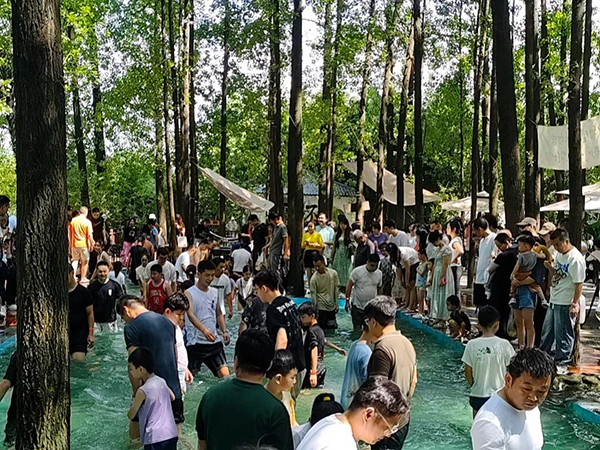 随后,众人移步溪流旁,展开了一场别开生面的徒手抓鱼竞赛。清澈见底的溪水中,小鱼灵动如诗,时而窜入石缝,时而跃出水面。大家或独自追逐,或协同围捕,宛如古人涉水捉鱼的雅趣重现。那溅起的水花在阳光下闪耀,仿佛点缀了诗情画意,令人流连忘返。