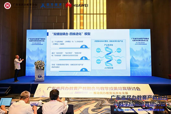 广东省民办教育协会常务副会长张耀荣在开幕致辞中表示,他希望民办学校进一步落实《粤港澳大湾区开展规划纲要》和《教育强国建设规划纲要》,加强与华为和讯方公司的合作,共同打造产教融合的职业教育体系,构建人才培养、科学研究和技术转移为一体的产教融合科教融汇的“湾区样本”。其他多位行业专家、院校学者围绕新时代背景下的产教融合创新实践及成果进行内容丰富翔实的报告,为民办教育高质量开展给予了丰富的理论视角和实践经验。