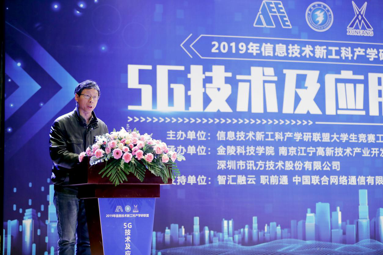 【中国,南京,2019年12月6日~8日】经信息技术新工科产学研联盟审批,由信息技术新工科产学研联盟大学生竞赛工作委员会主办,金陵科技学院和南京江宁高新技术产业开发区管理委员会、深圳市讯方技术股份有限公司联合承办,智汇融云信息技术(深圳)有限公司、深圳市职前通教育有限责任公司和中国联合网络通信有限公司江苏省分公司给予支持的2019年信息技术新工科产学研联盟“第一届全国大学生5G技术及应用大赛”在金陵科技学院隆重举行。金陵科技学院党委副书记、校长聂影教授,南京市江宁区人民政府副区长、江宁高新区党工委书记缪秀梅女士,金陵科技学院副校长张燕教授,东南大学孟桥教授,南京航空航天大学周建江教授,南京理工大学束锋教授,陆军工程大学蔡跃明教授,河海大学徐立中教授、国防科技大学南京校区梁涛教授,深圳市讯方技术股份有限公司戴毅董事长、刘国锋总裁、丁振强总工程师,中国联通南京市分公司刘涛副总经理出席了开幕式,来自全国的110个参赛队伍参加了开幕式。