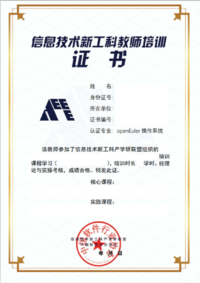 信息技术新工科产学研联盟证书【文末有样例,注:必须注册华为ICT学院(线上免费注册),必须完成开班开课(现场指导,免费开班开课)】。
